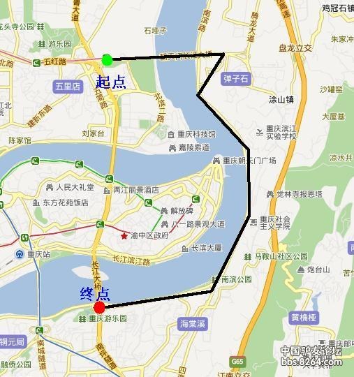 轻轨6号线五里店站4号出入口---朝天门大桥---南滨路---双子塔---南桥头全程11KM