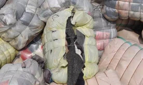 这批废旧衣物包括运动服、丝巾、毛衣、皮草等,包裹被压得非常紧实,每一包约有七八十公斤。 这些衣服烂糟糟的堆放成山,脏秽不堪, 但流入市场前他们可能会被翻新, 再重新挂上不知名的吊牌, 就是一件新衣服了!